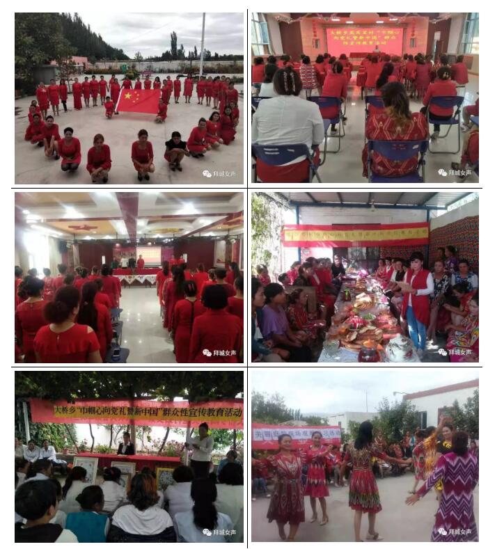 阿克苏市拜什吐格曼乡分别以诵读文章 “我和我的祖国”、宣讲《新疆的若干历史问题》白皮书、讲“最美家庭”故事、文艺表演等多种方式展现新时代妇女良好的精神风貌。