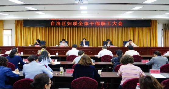 自治区妇联班子成员、厅级干部,机关及直属事业单位全体干部参加会议。