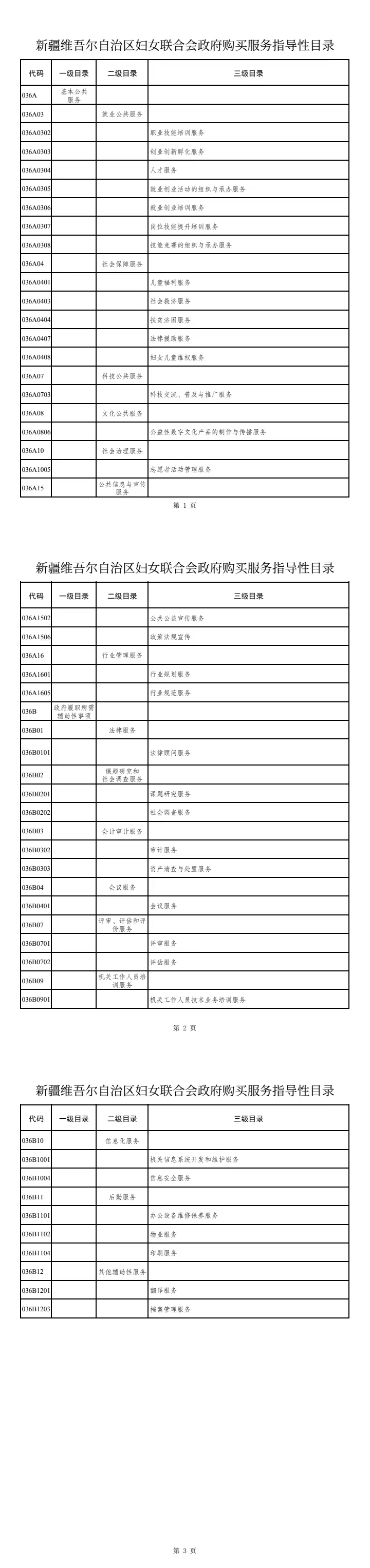 新疆维吾尔自治区妇女联合会政府购买服务指导性目录