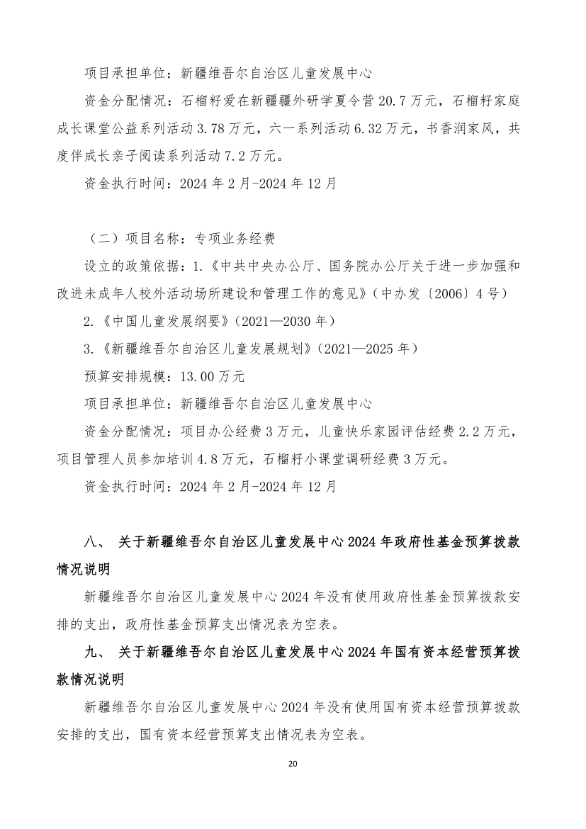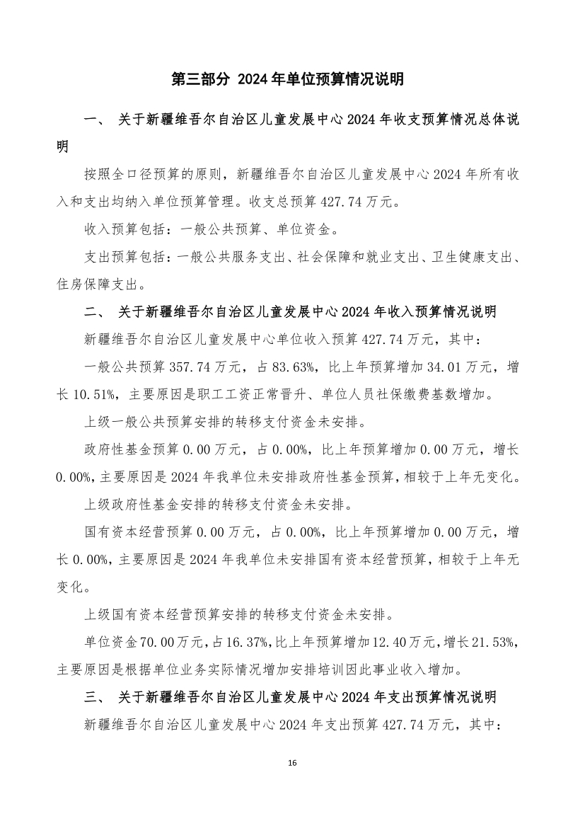 新疆维吾尔自治区儿童发展中心2024年单位预算公开
