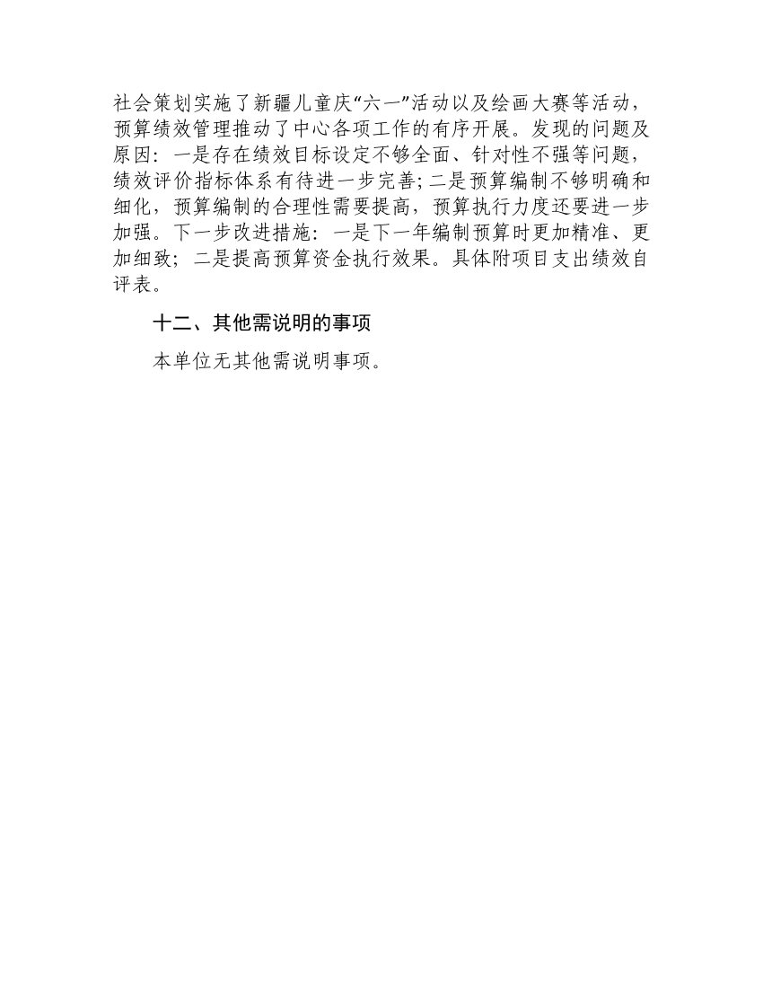 新疆维吾尔自治区儿童中心绩效自评表及报告