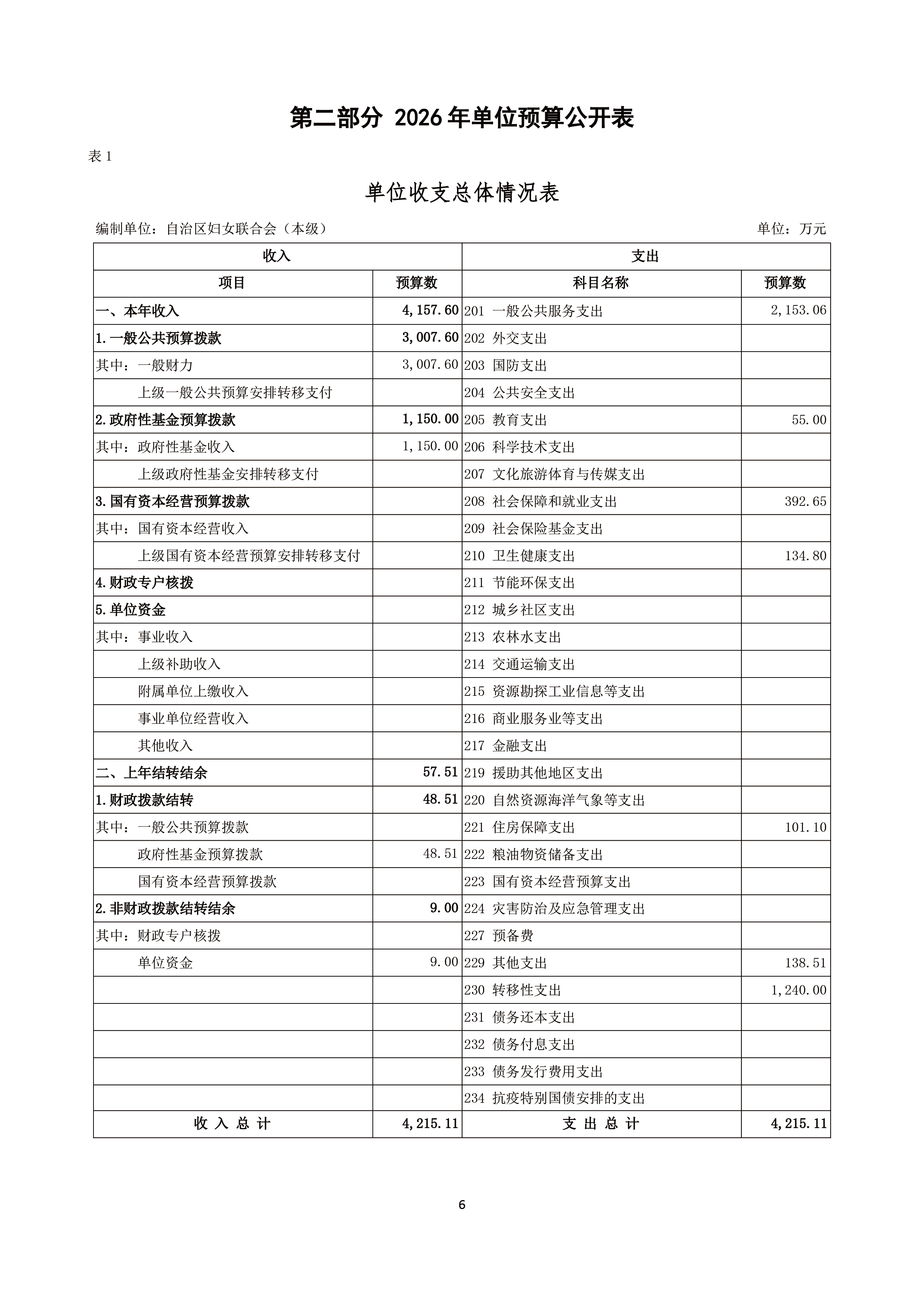 自治区妇女联合会(本级)2026年单位预算公开报告