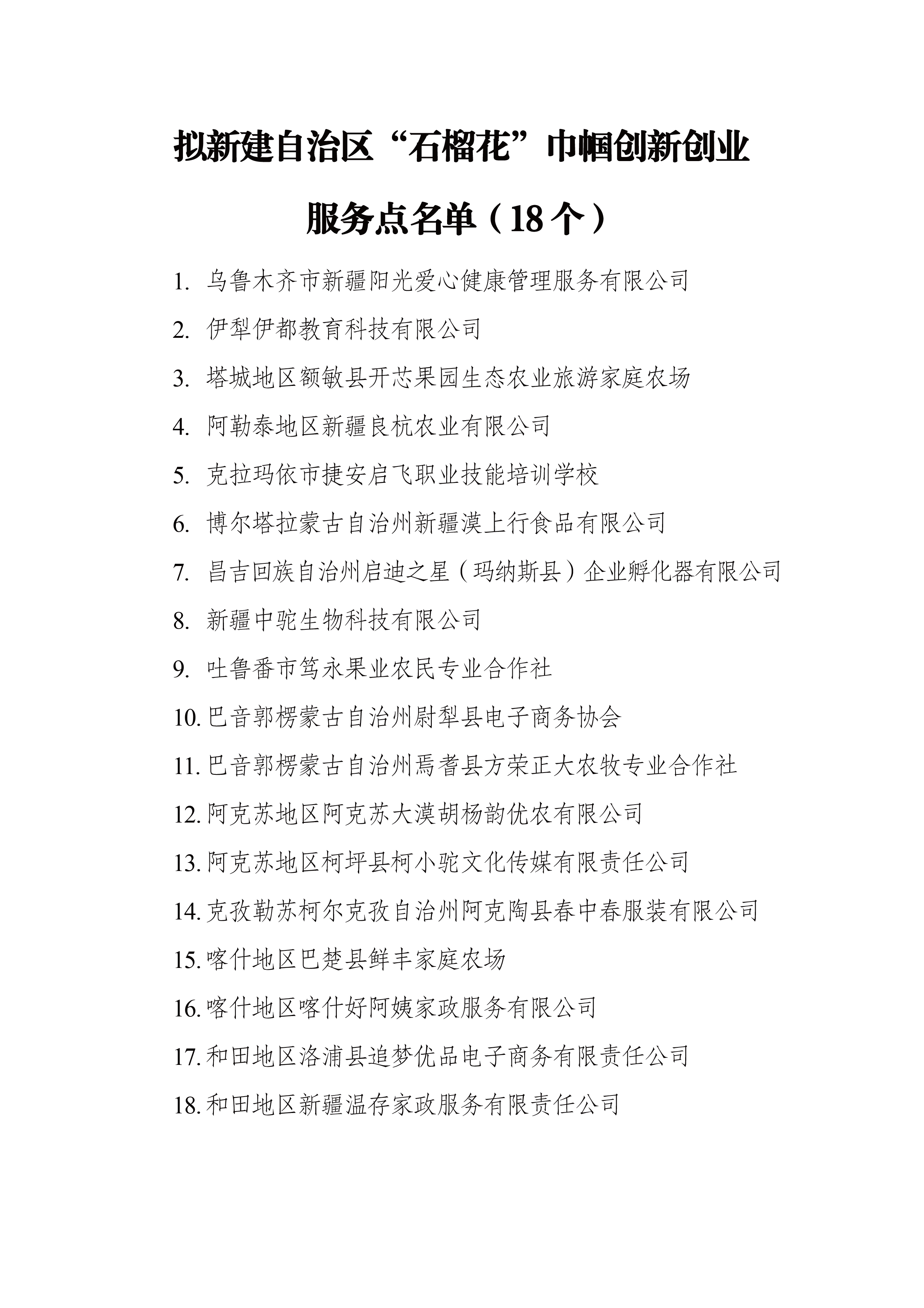 2026年拟新建自治区“石榴花”巾帼创新创业服务点名单