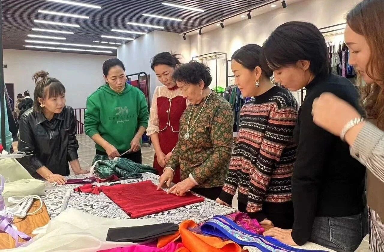 蒙古族服饰裁剪制作培训中,学员们认真学习传统技艺。