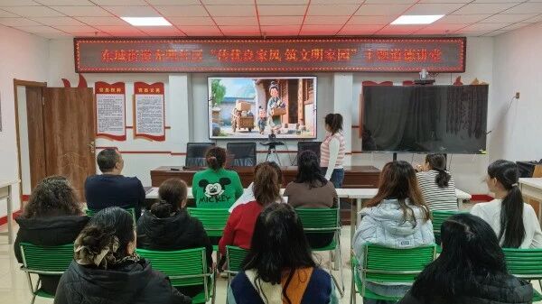 库车市东城街道光明社区新时代文明实践站举办“传优良家风 筑文明家园”道德讲堂,辖区党员、居民代表齐聚一堂。活动中,全体合唱歌曲《家风》,共同学习《焦门家风》,重温焦裕禄同志“艰苦朴素、廉洁奉公”的感人故事。在讲述环节,党员代表生动分享了“孟母三迁”“曾子杀猪”等经典故事,从传统文化中汲取家风育人的智慧与力量。现场气氛热烈,社区居民热烈讨论对优良家风的认同与向往。本次道德讲堂通过歌曲、故事等形式,生动传递了家风正能量,为营造邻里和睦、文明和谐的社区氛围注入了深厚的精神滋养。