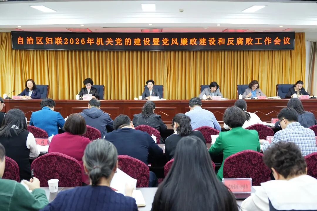 3月13日,自治区妇联召开2026年机关党建暨党风廉政建设和反腐败工作会议,深入学习贯彻习近平总书记关于党的建设的重要思想、关于党的自我革命的重要思想,学习贯彻习近平总书记关于树立和践行正确政绩观的重要讲话重要指示精神,传达学习二十届中央纪委五次全会精神、自治区纪委十届六次全会精神和自治区直属机关党建工作会议精神,总结2025年工作成效,部署2026年重点任务,为“十五五”开局之年妇女儿童事业高质量发展提供政治保障。自治区妇联党组书记、副主席李灵慧出席会议并讲话。